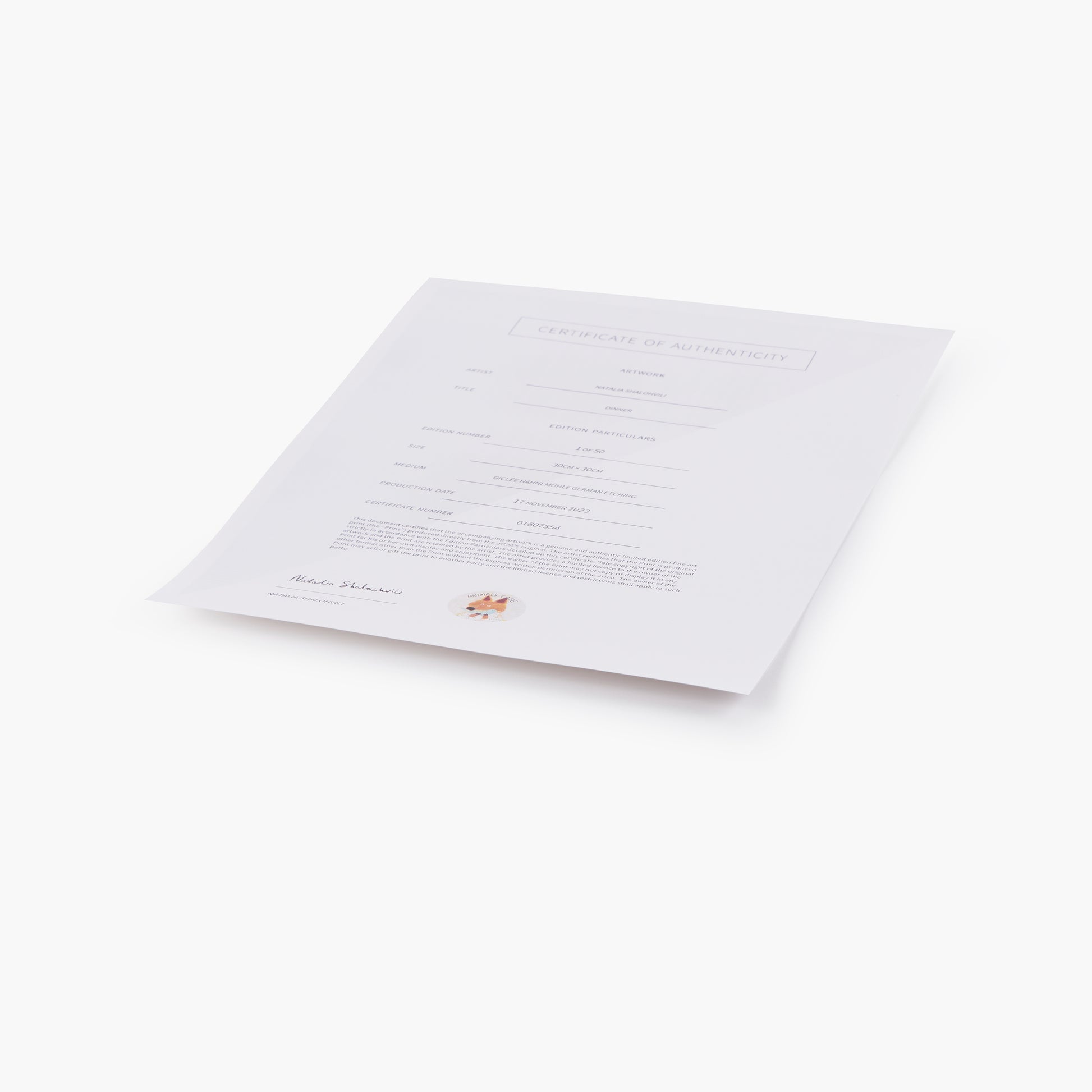- Presented on acid-free, archival textured cotton German Etching Giclée paper, from Hahnemühle